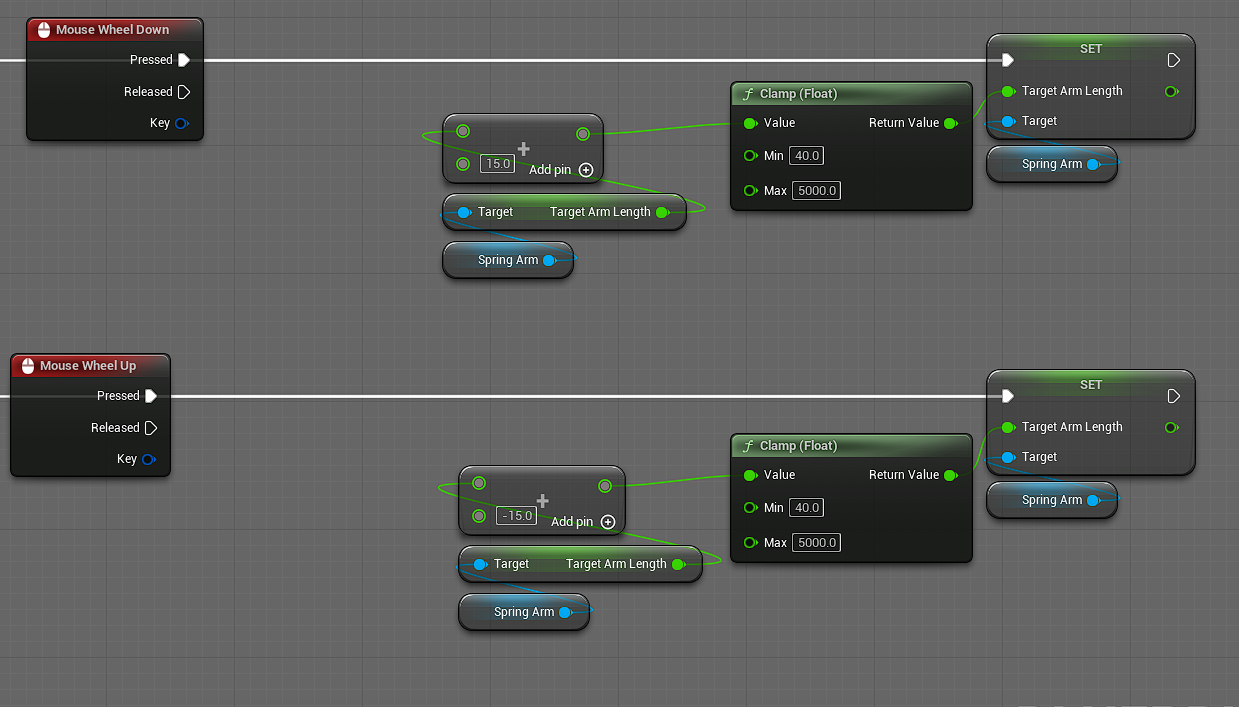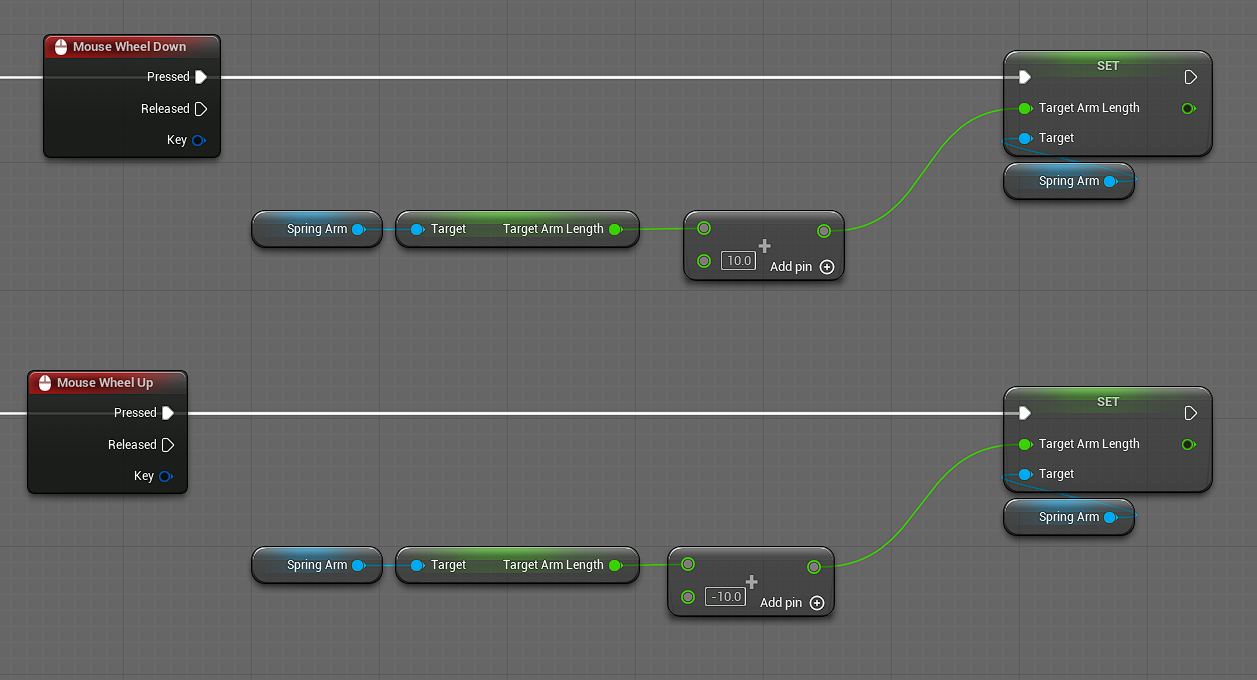 자 이제 동작을 생각해보자 내가 휠을 다운한다면 카메라는 멀어져야 하고 휠을 업한다면 카메라는 가까워져야 할 것이다. 그러면 휠 다운 동작 1번당 특정 값만큼 기존 Target Arm Length에 더해지도록 하면 되지 않을까? add를 써보도록 하자