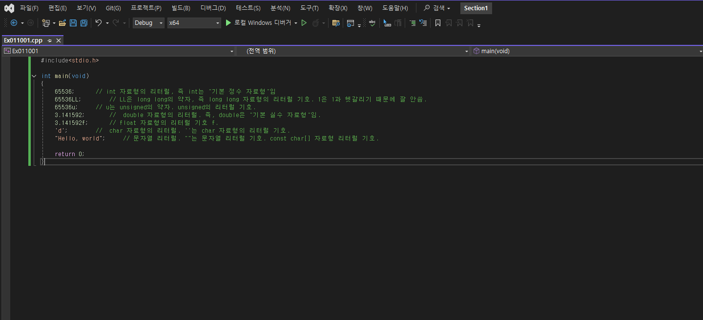 그렇다면 해당 리터럴 즉 값들이 그냥 main 함수 안에 들어가 있을 뿐이라 생각하면 될 것 같다.
