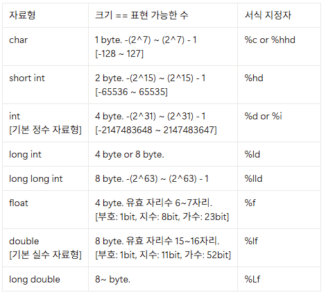 이번에는 서식지정자를 이용하는 것이다 서식지정자는 다음과 같다.