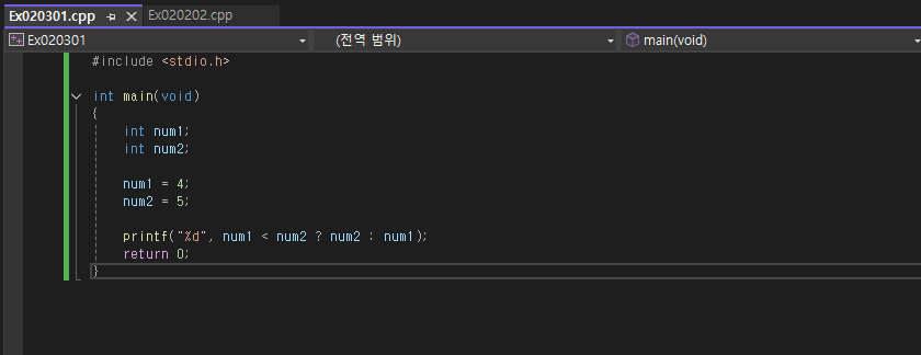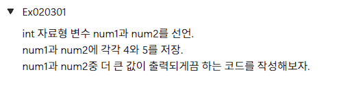 이를 구현하기 위해 삼항연산자를 사용해 보았다 삼항 연산자는 앞의 식이 참이라면 : 앞의 값을, 거짓이라면 : 뒤의 값을 결과로 내놓는다. 한마디로 if-else와 같은 기능이라 생각하면 된다 그 뜻대로 만약 num1이 num2보다 작으면 num2를 아니라면 num1을 출력하도록 해서 더 큰 값이 출력되도록 해보았다 과연 결과는 어떨까?