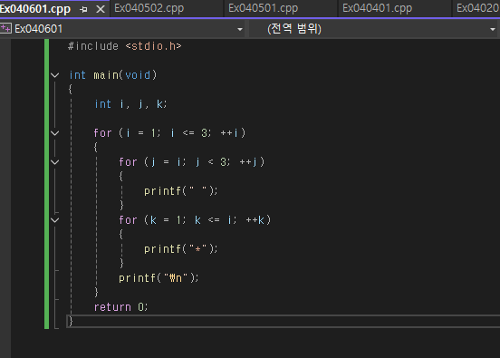 다음으로 배울것은 이중 반복문이다. 순회 변수로는 i, j, k, ... 순으로 작성되며 다음과 같이 작성한다.