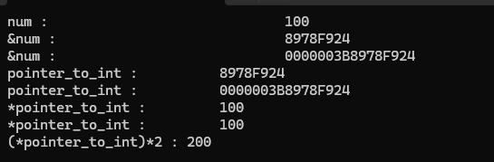 8. printf("(*pointer_to_int)*2 : %d\n", (*pointer_to_int)*2);