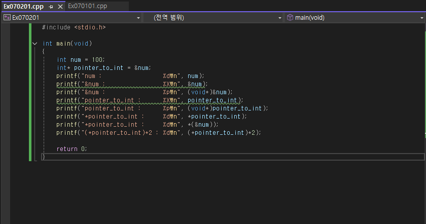 7. printf("*pointer_to_int : %d\n", *(&num)); (올바르진 않지만, 소거하는 식으로 이해를 해보자는 각주가 달려있다.)