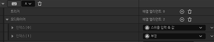 당연히 X축 방향으로 전진해야 하는 W키는 입력한 그대로 진행되게끔 아무런 모디파이를 설정하지 않는다.