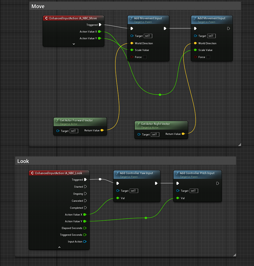 시점은 이보다 단순하다. Move 때와 같이 yaw 인풋, pitch 인풋을 각각의 x축 y축 노드를 이어주면 끝이다.