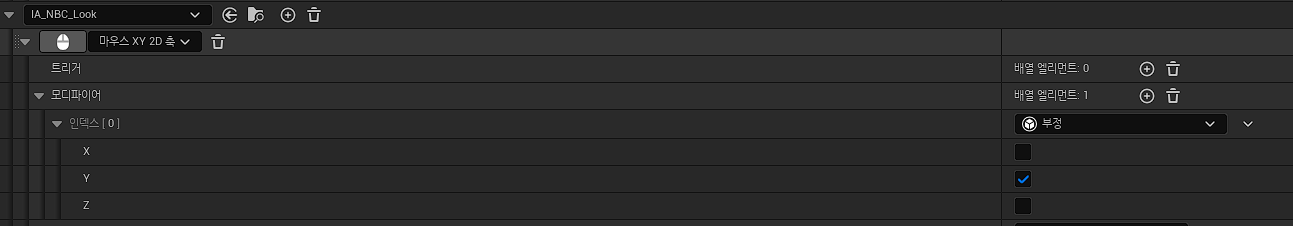 다음과 같이 메핑 콘텍스트에서 마우스 y축만 반전이 되도록 설정해 주면 된다!