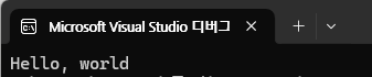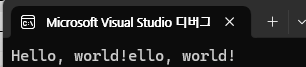 char자료형의 크기는 따로 지정하지 않은 cstr 문자열을 선언하고 그 값으로 "Hello, world!"를 받고 있고 int 자료형의 변수 i를 선언해 주었다. for문을 이용한 반복문으로 cstr의 각 i 번째 원소들을 출력하는 것을 반복하게 하고 있고 만약 cstr [i]가 ' '값을 가리키고 있다면 반복문을 break 하도록 해 두었다. 그러면 그냥 Hello, world! 가 모두 출력되지 않을까? 한번 봐보자.