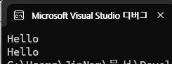 Hello, 만 출력된 모습이다. 이번에는 Hello만 입력해 보자