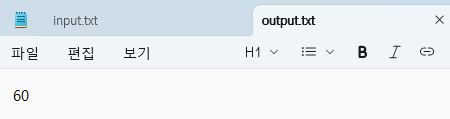 이 코드를 작성하고 프로젝트 폴더에 input.txt를 생성하여 아무 숫자를 적은 다음 실행해 보면 다음과 같이 나온다.