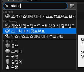 이후 블루프린트로 들어가 액터의 모양을 결정해 주기 위해 스태틱 매시 컴포넌트를 통해서 문 모양을 찾아준 다음 설정해 주고 원하는 위치에 액터를 배치해 준다.
