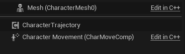 여기서 우리가 하고자 하는 일의 핵심은 바로 Character Trajectory이다. BP내부의 컴포넌트 패널에서 add를 눌러 해당 컴포넌트를 추가해 주자
