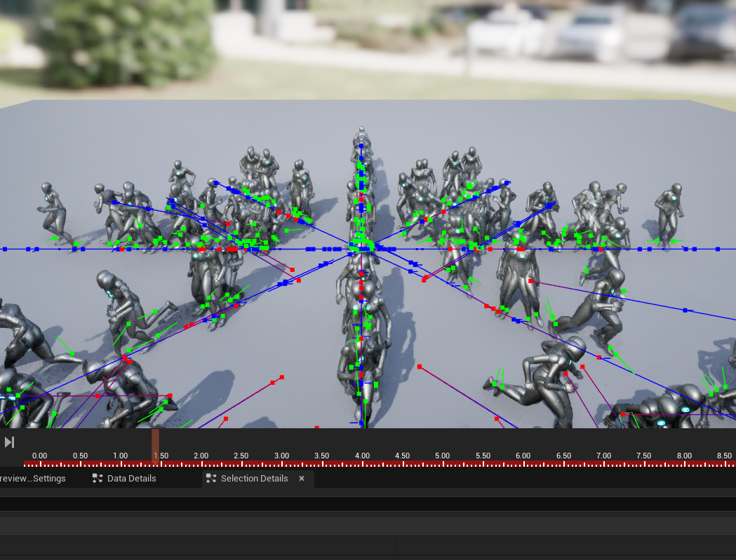 하나의 PSD에 수많은 애니메이션 시퀀스를 때려 박아 조금 조잡하지만 그럴싸하게 움직이는 것을 확인할 수 있다. 내일은 PSD에 몰아넣는 것이 아닌 여러 PSD를 생성한 후 Chooser를 통해서 적절한 PSD를 서칭 하는 방법을 공부해서 GASP에 가까운 무언가를 만들어 보려고 한다.