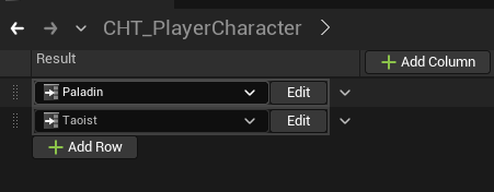 일단 CHT의 구조는 다음과 같다. CHT_PlayerCharacter ->(직업 클래스 여부에 따라) CHT_Paladin ->(전투 상태 여부에 따라) CHT_Paladin_General -> 일반 상태에 다른 분류 -> 애니메이션이 담긴 PSD의 순서로 Chooser계층을 구성하였다. 이제 팀원이 작성한 T3 CharacterBase로 BP를 만들고 ABP를 만들어 BP에 등록해 주고 ABP의 이벤트 그래프에서 다음처럼 필요한 변수들을 등록해 준다.