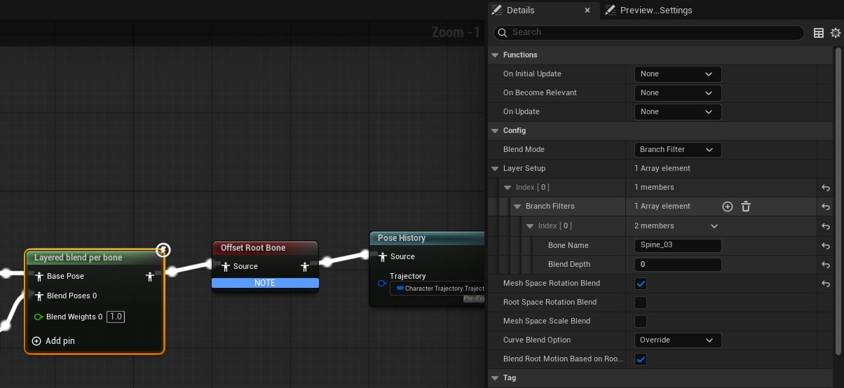 이제 움찔 에 해당하는 공격이 들어오면 Spine_03에 해당하는 상체만 애니메이션이 재생되어 기존의 모션과 블랜딩 되게 된다.